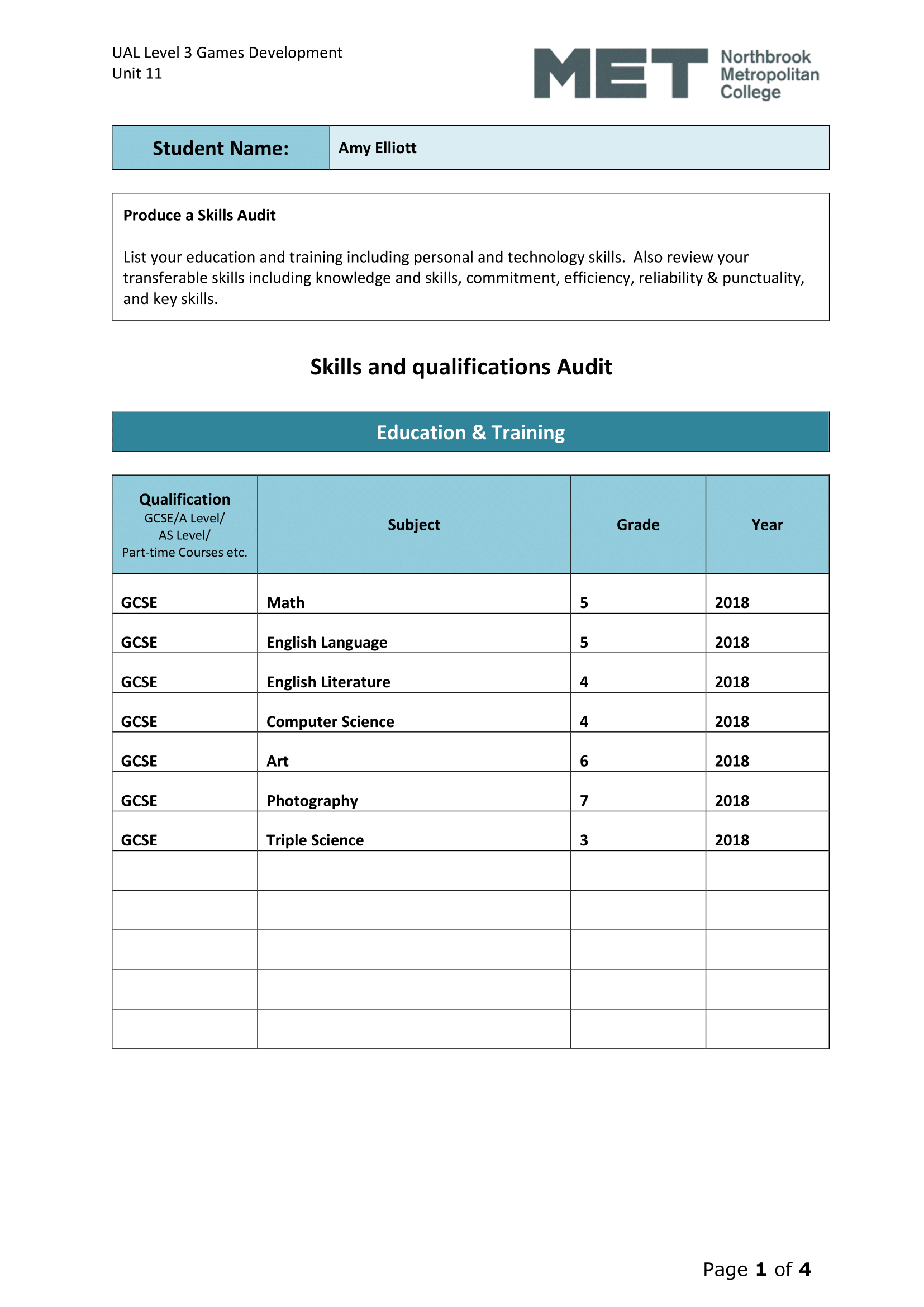 Task 1.1b – Skills Audit