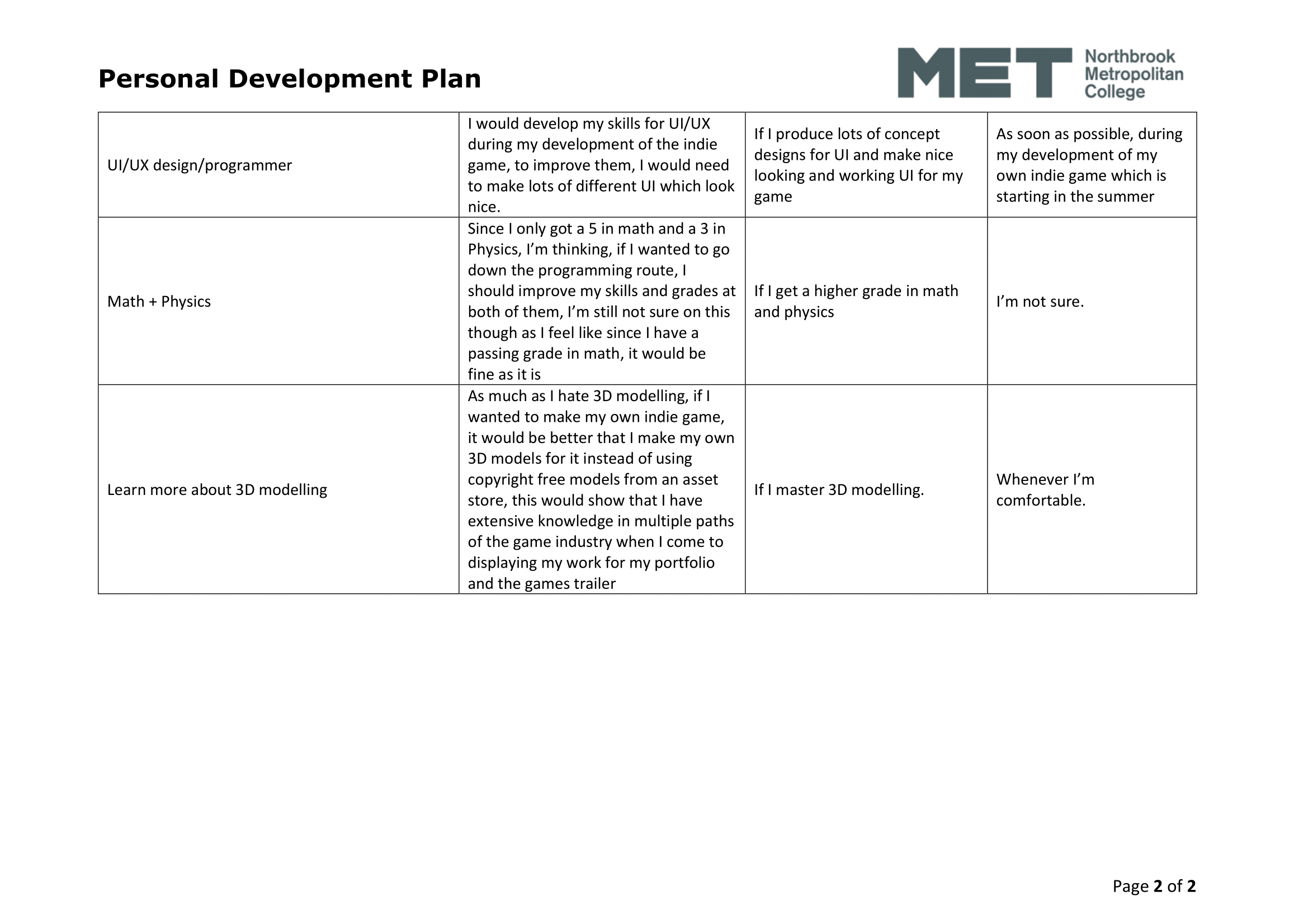 Another big achievement I think I have come by is applying myself to as much as I can so I have more to put on my CV – For example, applying for Game Jams, meeting people in the industry, teaching myself how to repair technology and how to program, I also think another big achievement of mine is staying in my job at CeX, I’ve been working there a long time and that job has taught me lots relating to technology.