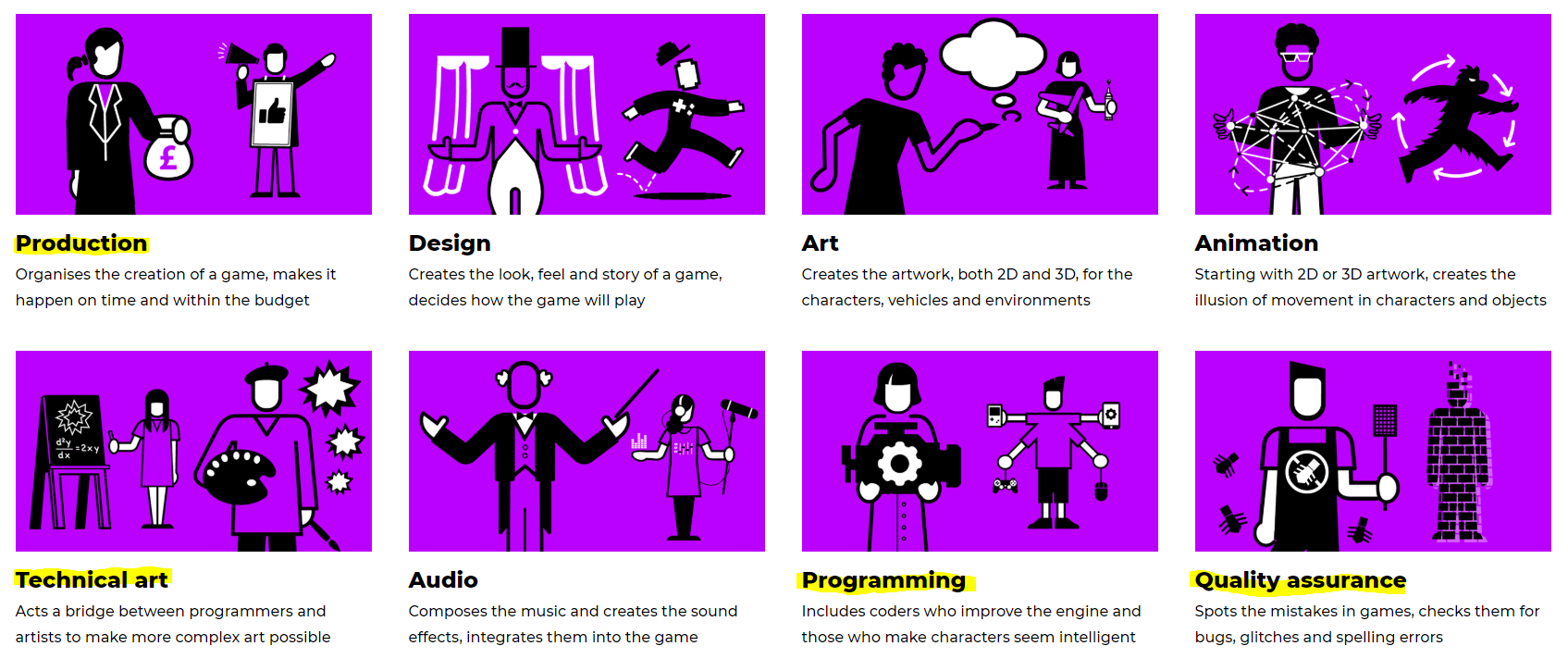 Programming – I think the programming route would be ideal for me if I wanted to get a well paid job, since lots of people need programmers to make games work, even programmers for other things not involving games, I quite like programming, as you feel like you’ve really achieved something great when you manage to get something working, and I feel, if I go into a university and focus just on programming, I can probably get myself quite far as art is something I can teach myself, I would have both programming and art on my back.
