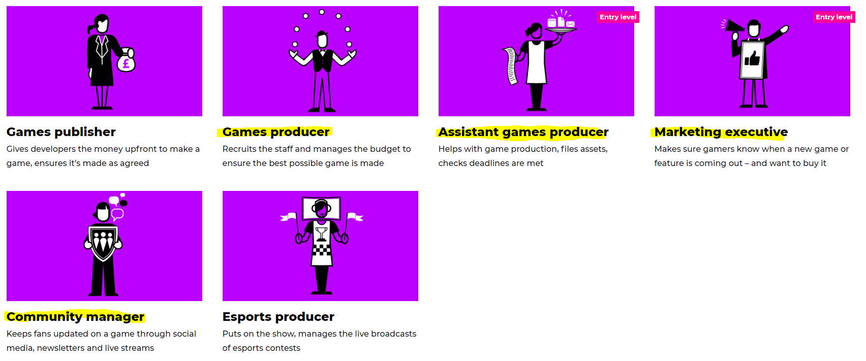 Marketing Executive – The reason why I like this job is that you’re in charge of hyping up the game! Bringing in fans which will want to buy the game, using social media, events, online communities, websites and lots more to advertise the upcoming game, they make updates on the features of the game and they coordinate the design of in-game screenshots and all media used during advertisement and marketing of the upcoming game.