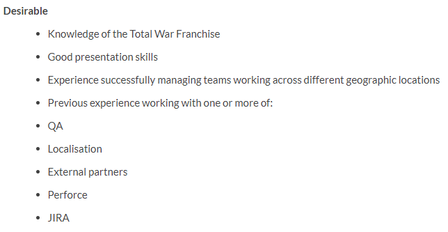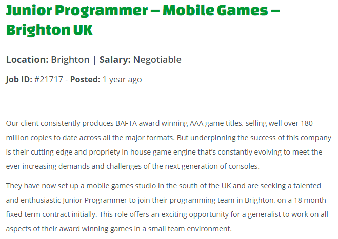 Assistant Games Producer – The reason why I like this job is that it’s a lot like the Games Producer job, but you’re working more with the team, and your job is always changing, so you’re never stuck doing the same thing over and over, you’re also responsible for making sure deadlines are met and filling and archiving games assets needed for marketing and press releases, and making sure the game is adapted right for localisation.