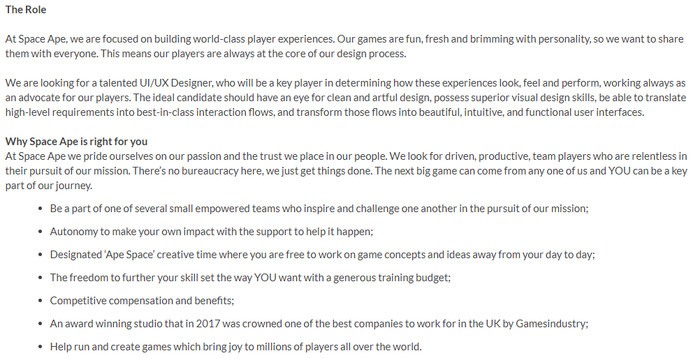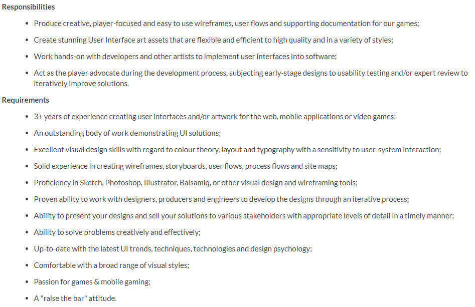 UX & UI Designer – The reason why I like this job is that I’ve always wanted a job like this, since UI is super important in games, another reason is that it’s a mixture of both art and technical, UX is also super important as it’s the users experience, how they’re meant to experience the game.